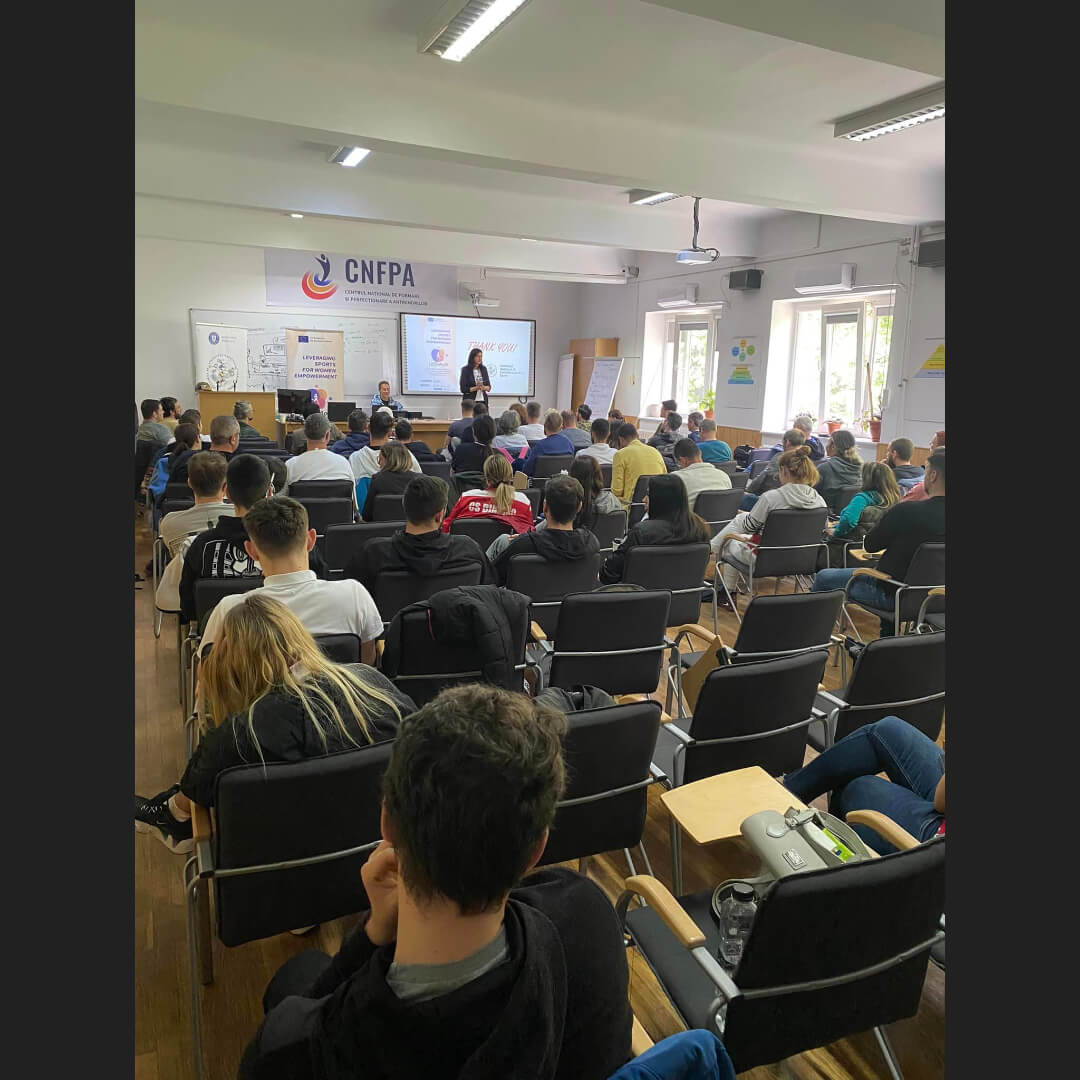 The project leader, INCS Bucuresti, organized a seminar on empowering women through sport for the students of the National School for Trainers.
